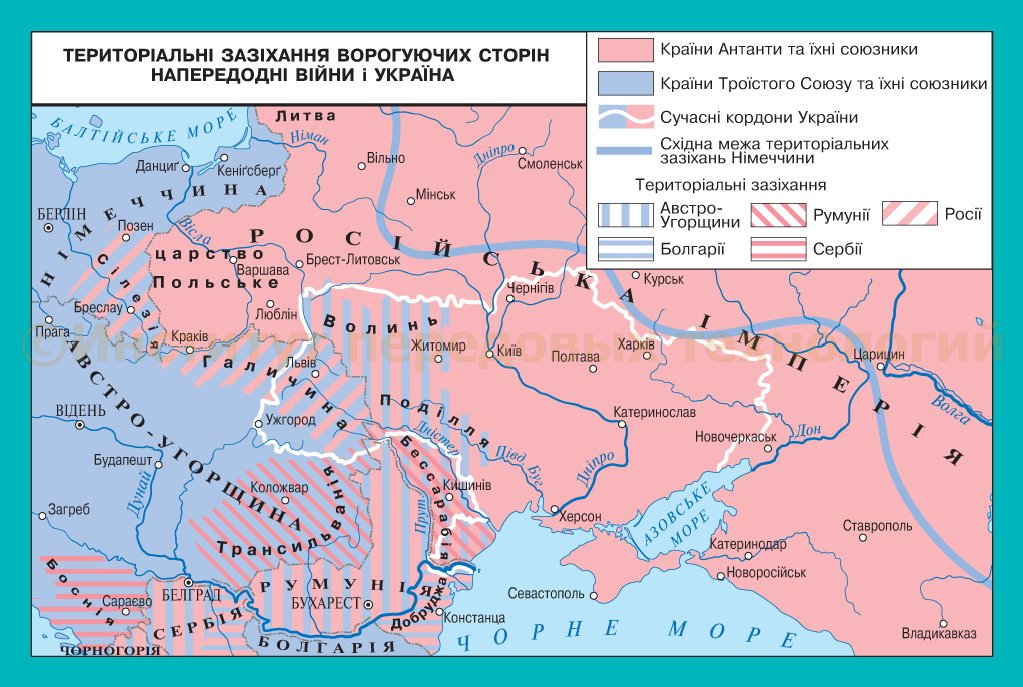 На початок війни українські землі були поділені між двома імперіями: