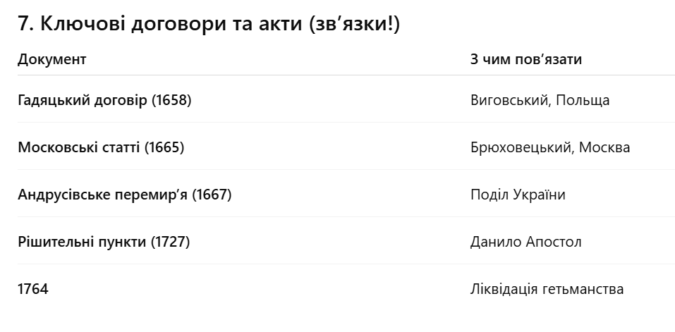 ➜ Гадяцький договір (1658) — спроба союзу з Польщею.