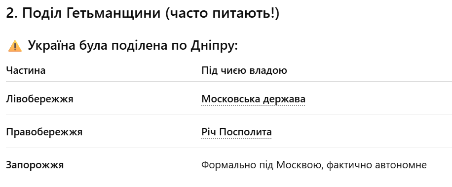 ➜ Гадяцький договір (1658) — спроба союзу з Польщею.